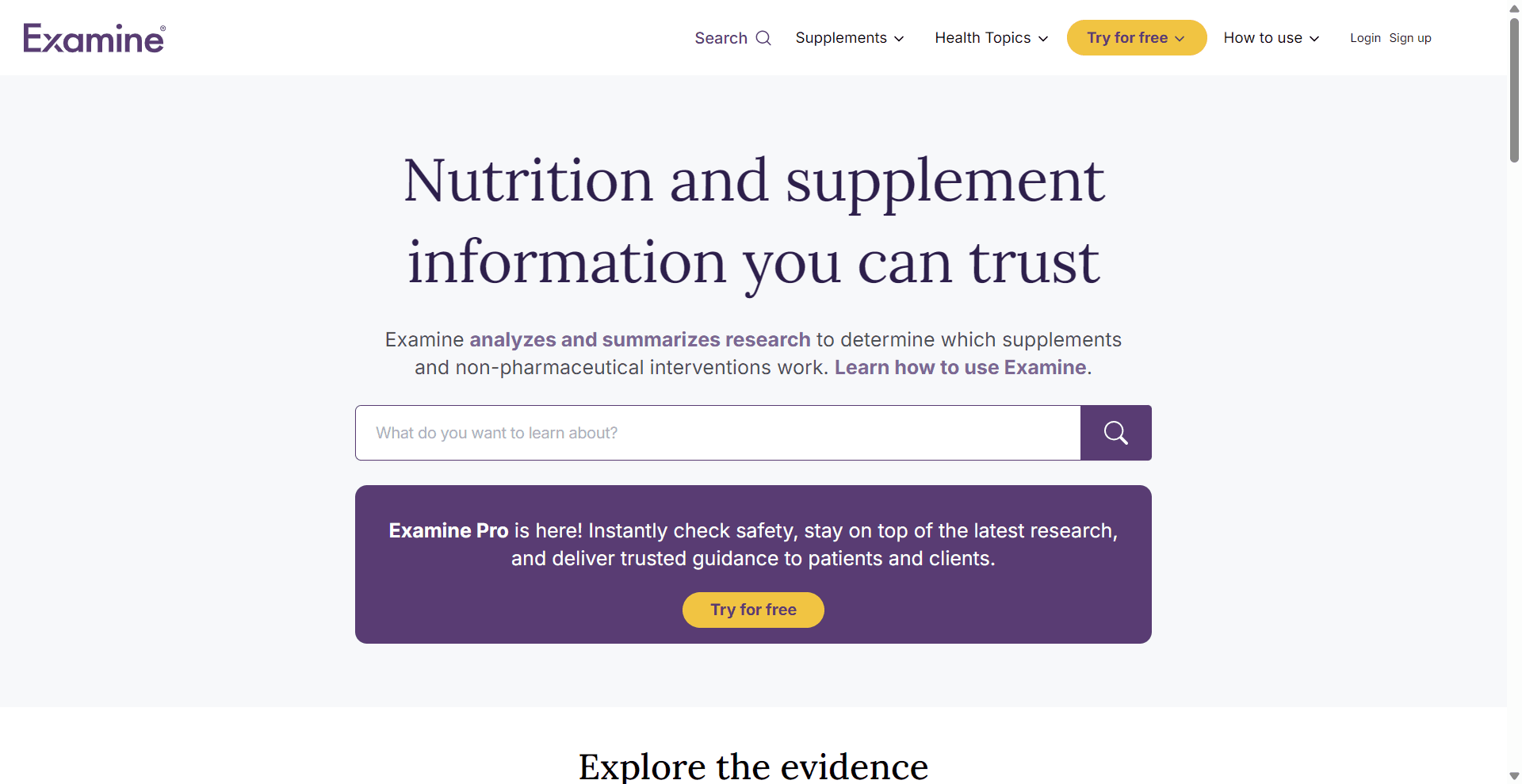 When I presented to the team, the technical lead redirected: Longevidence should be closer to a search tool, referencing examine.com as the primary model.