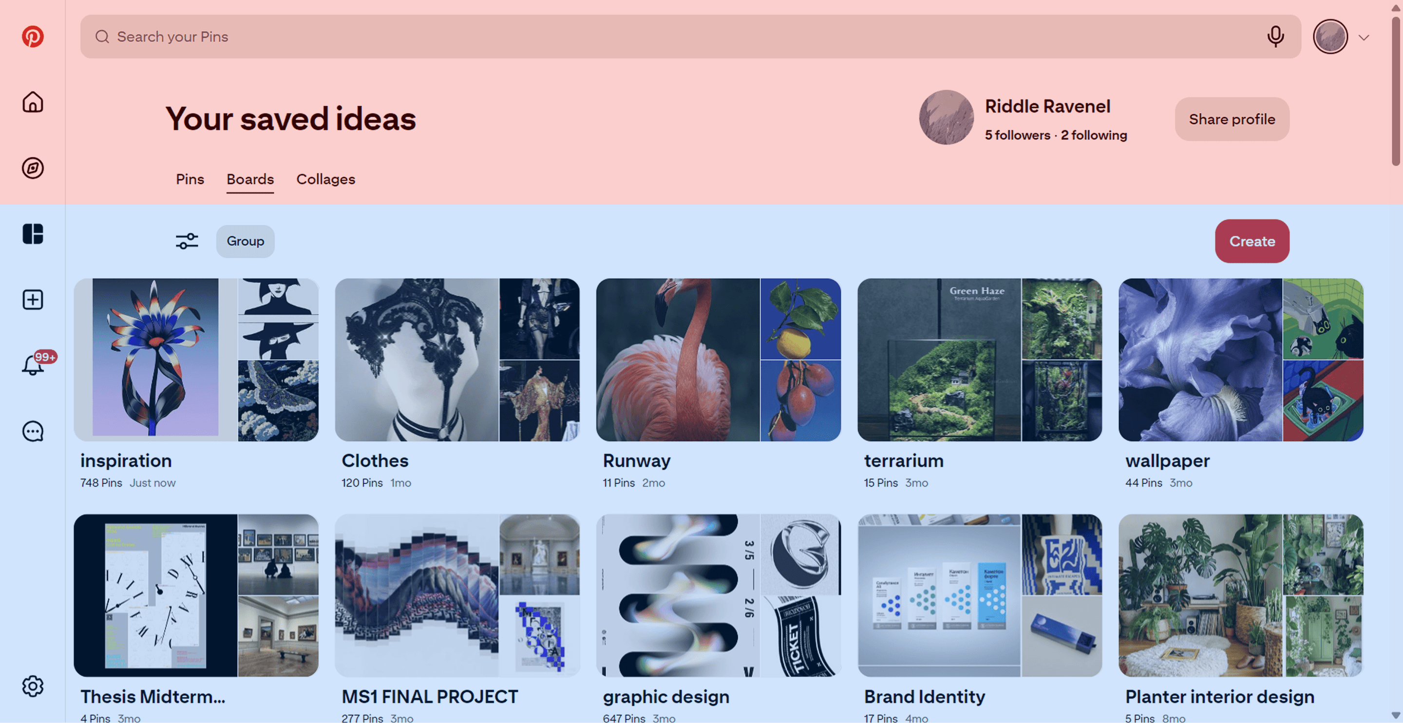 To determine how to structure this unfamiliar hierarchy, I inspired by Pinterest and LinkedIn.