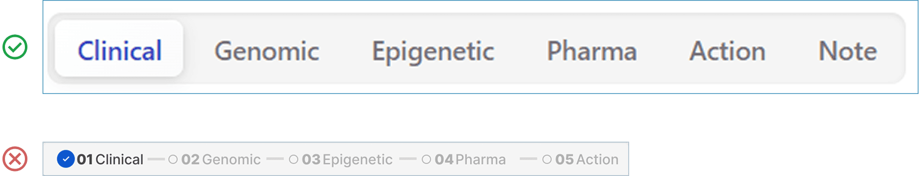 Direct access to any tab . This supports both comprehensive initial assessments and focused follow-up monitoring, where physicians access only the relevant dimensions without repeating completed reviews.