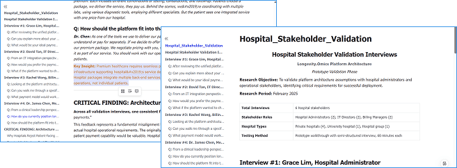 The left panel displays the actual patient-facing report. Physicians verify output quality during the consultation workflow, not retrospectively. In a model where physicians stake professional credibility on AI-generated content, real-time verification is a prerequisite for clinical adoption — not a feature enhancement.