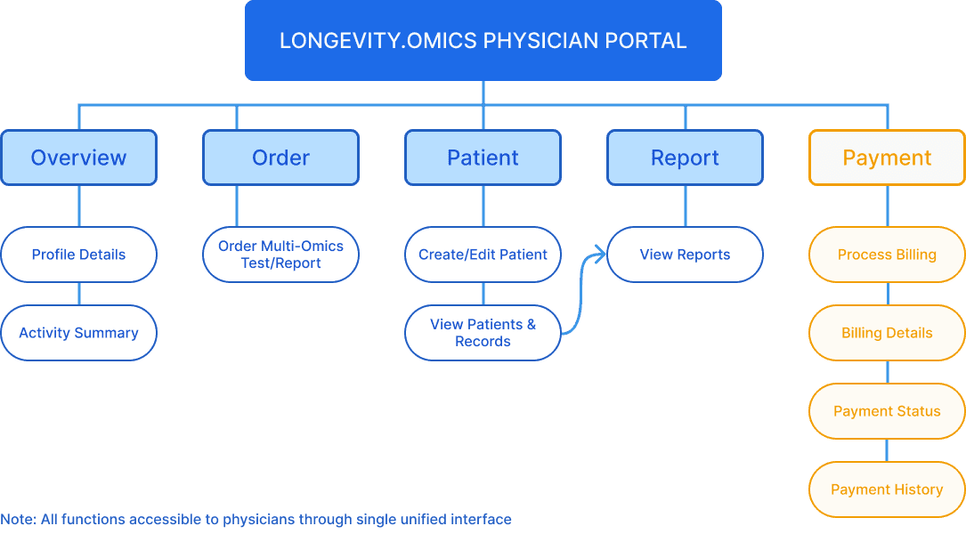 The initial approach followed standard platform logic: a unified physician portal consolidating patient management, test ordering, report review, and billing into a single interface.